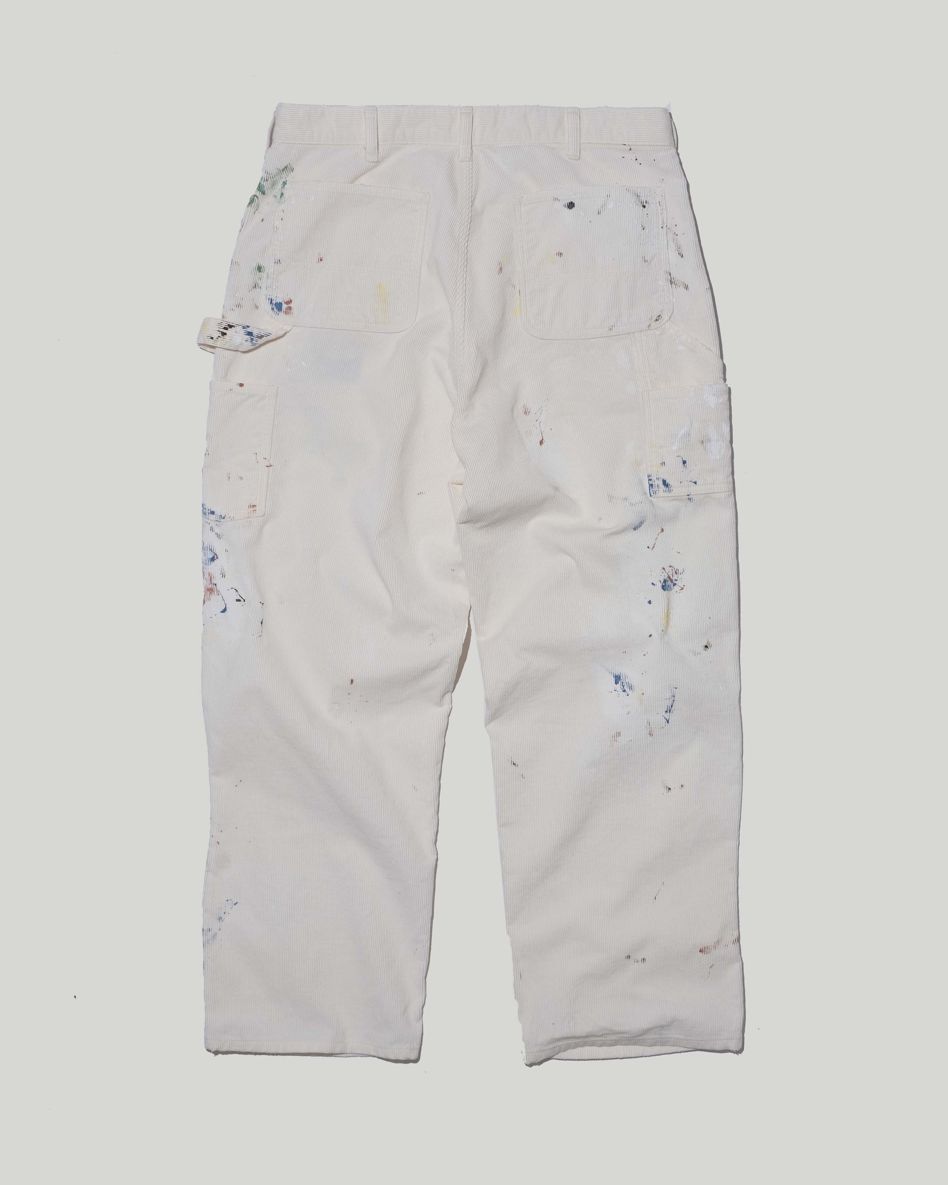 古着では滅多に出てこないコーデュロイのペインターパンツを再現。SS25で展開していたカーペンターパンツと同じシルエットで、1990~00年代のLevi's Silver tabのモデルがベースとなっている。ゆったりとしたワイドシルエット。リアルなハンドペイント加工でヴィンテージ感を演出している。オリジナルボタン。